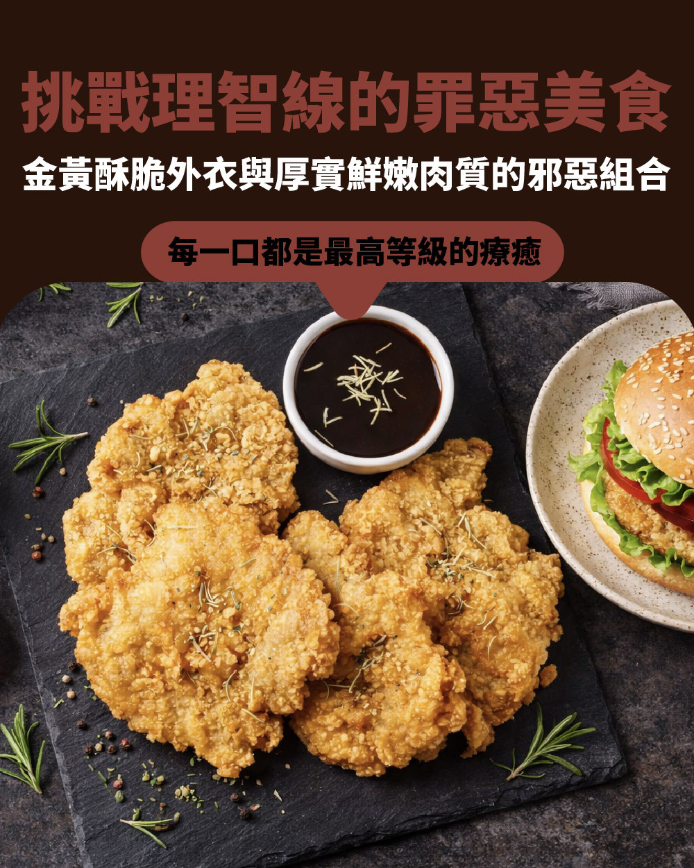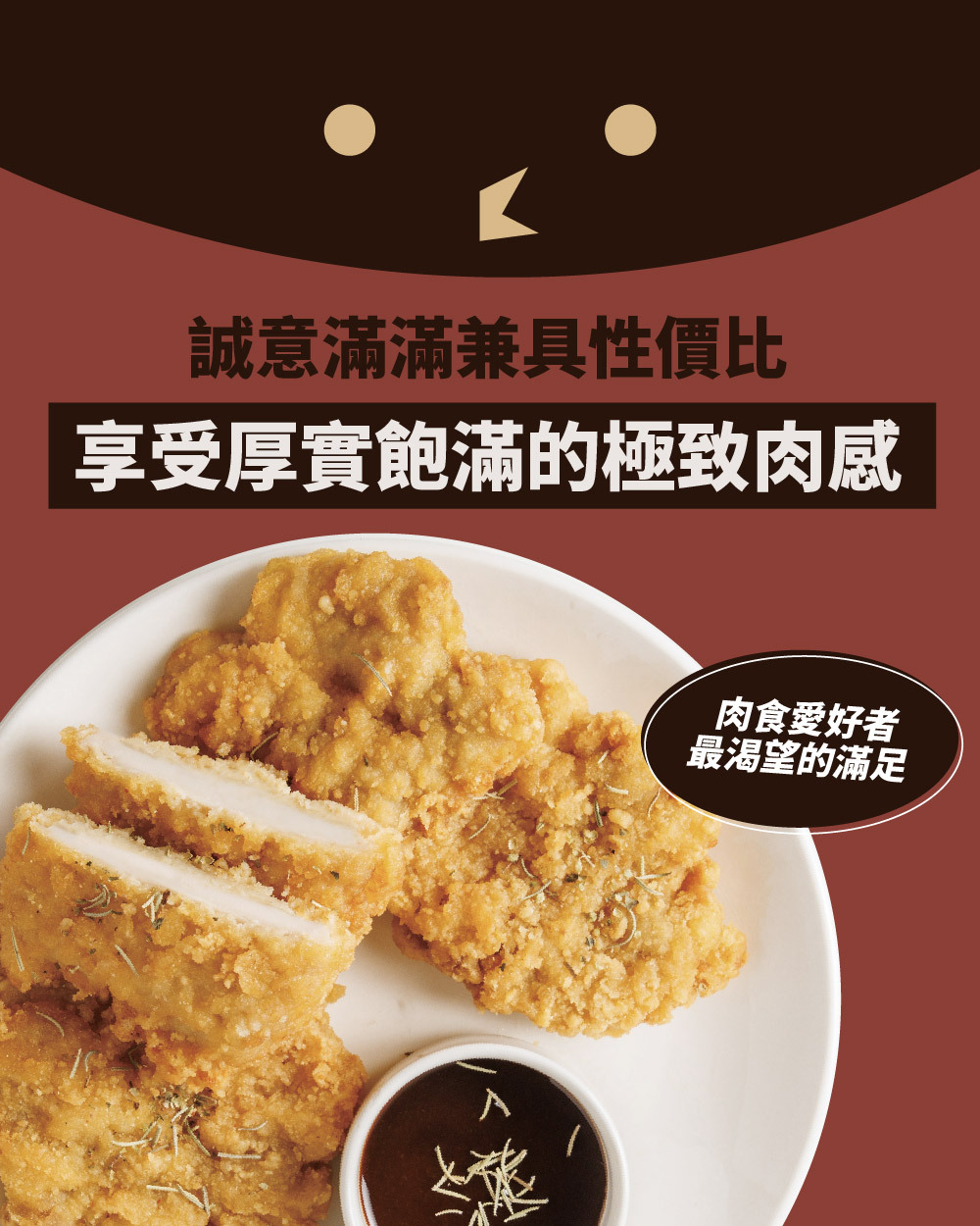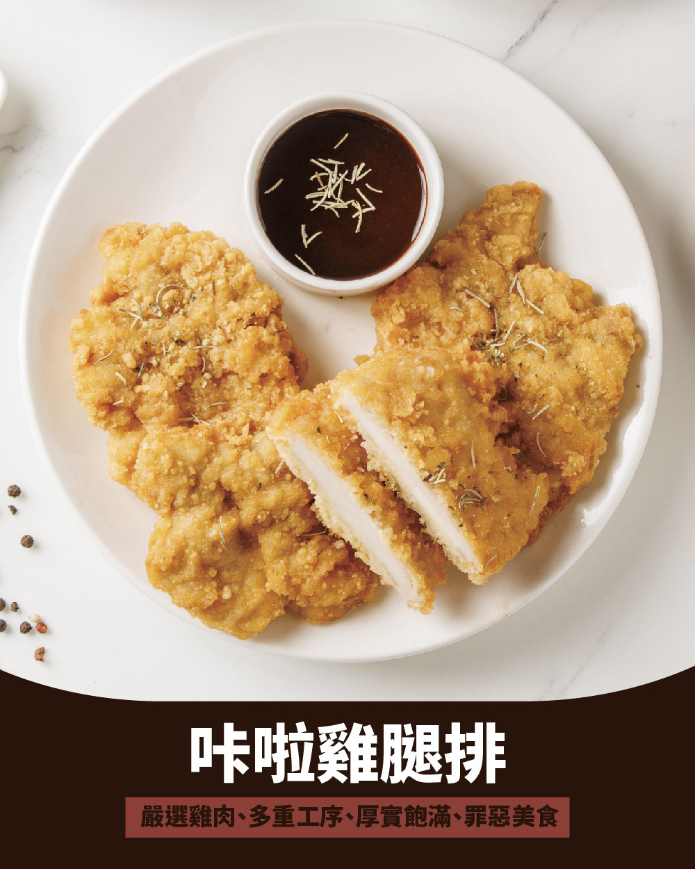 ◍ 厚實雞腿排,香脆多汁