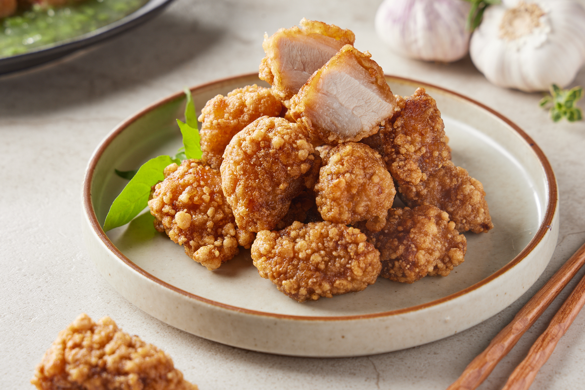 放入酥炸的無骨排骨酥與香菜即可!