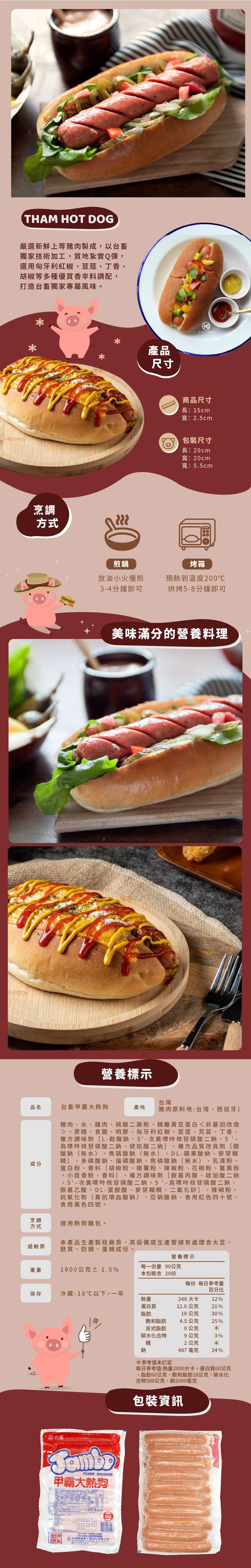 嚴選新鮮上等豬肉製成,以台畜獨家技術加工,質地紮實Q彈,添加天然黑胡椒顆粒、匈牙利紅椒、荳蔻、丁香、胡椒等多種香辛料調配,份量厚實,飽足感十足。