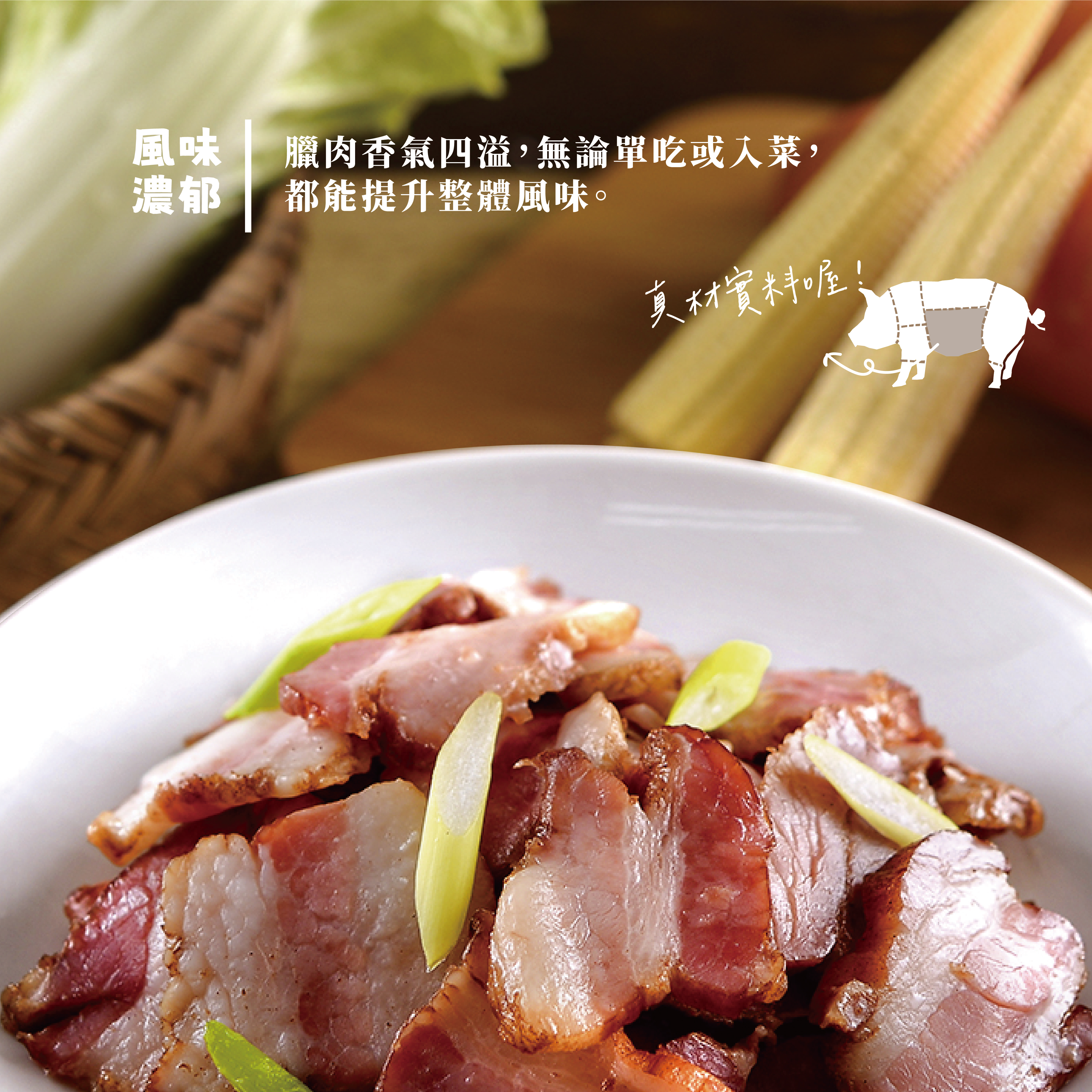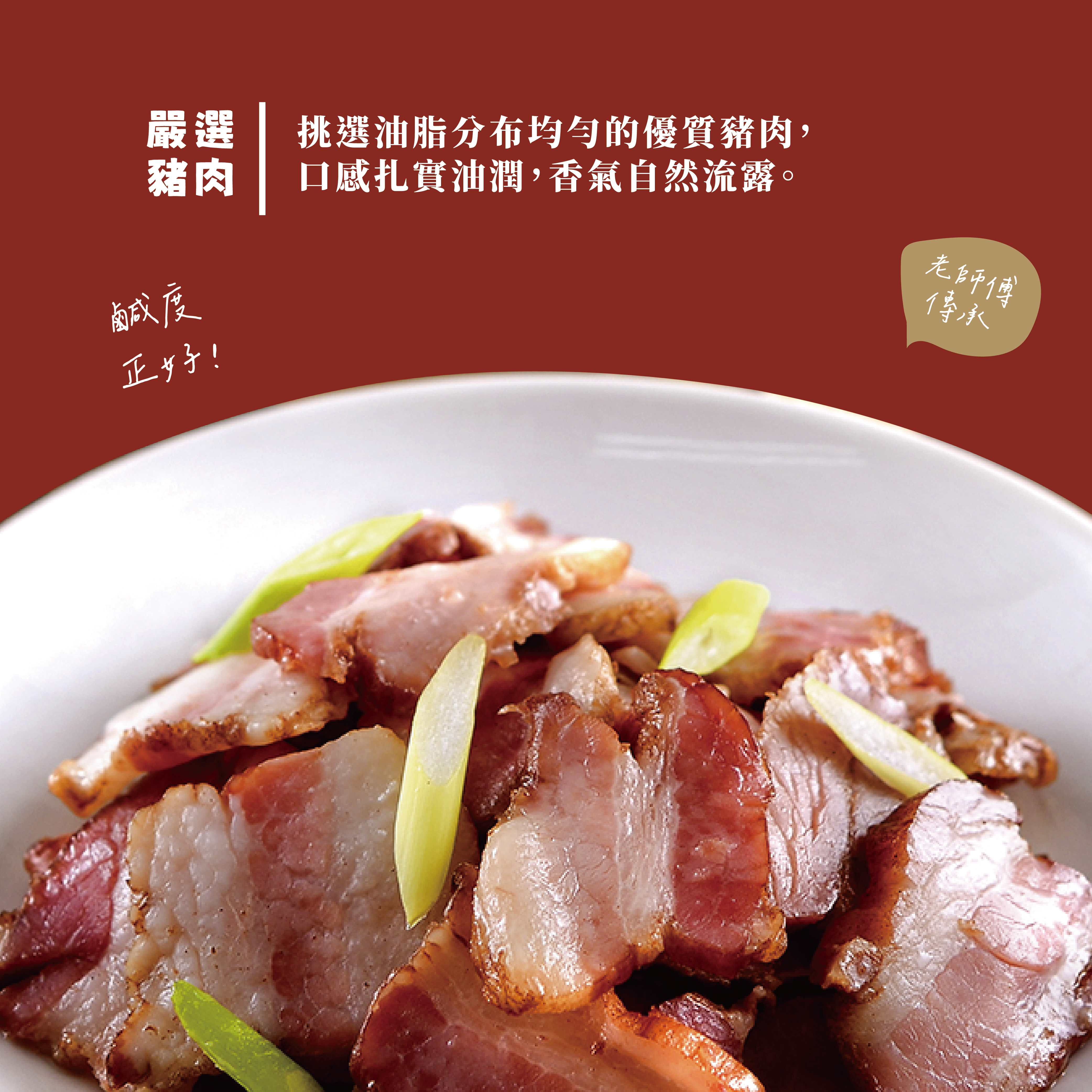 ◍ 嚴選豬五花肉條,油香肉嫩