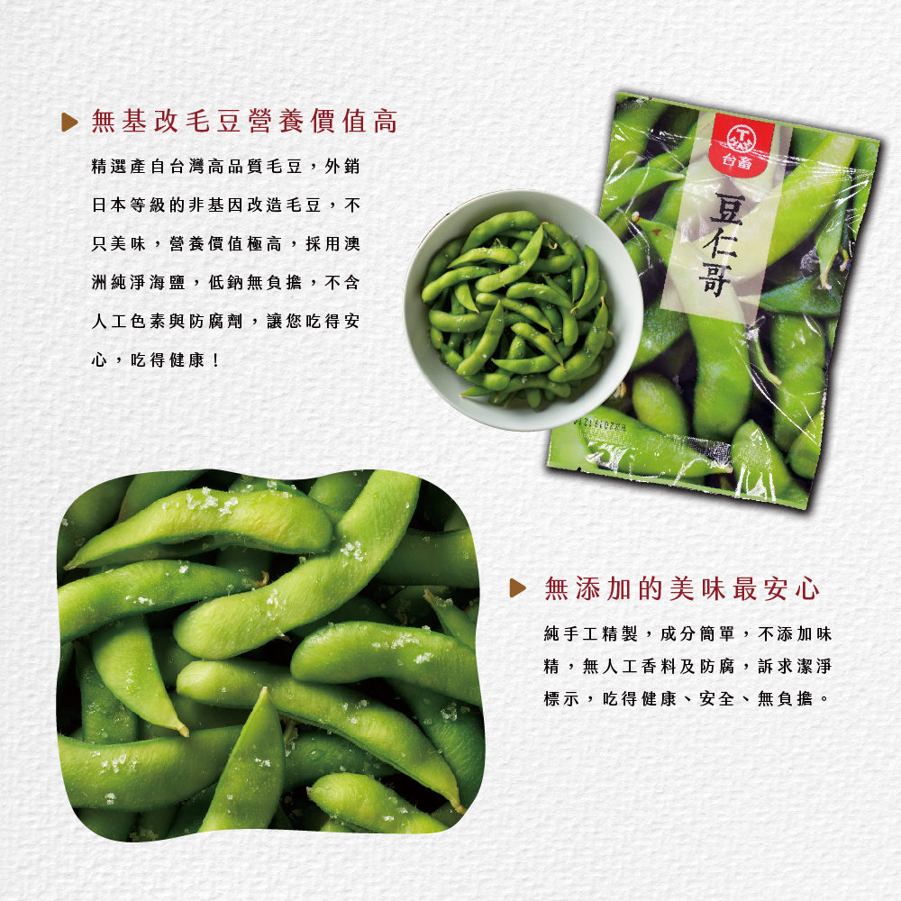 •  精選產自台灣毛豆專區非基因改造毛豆,味濃、味甘、味香。
