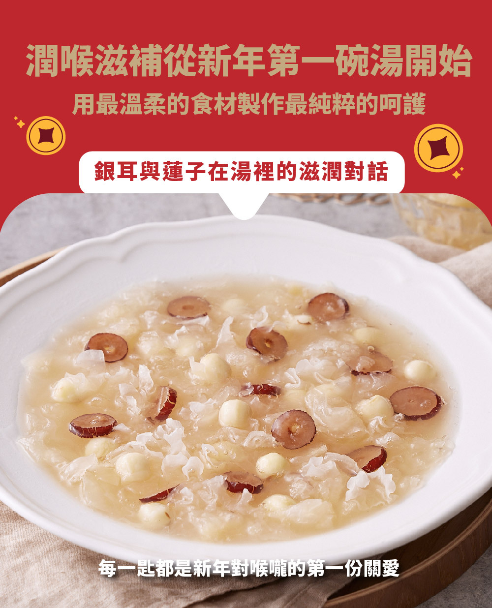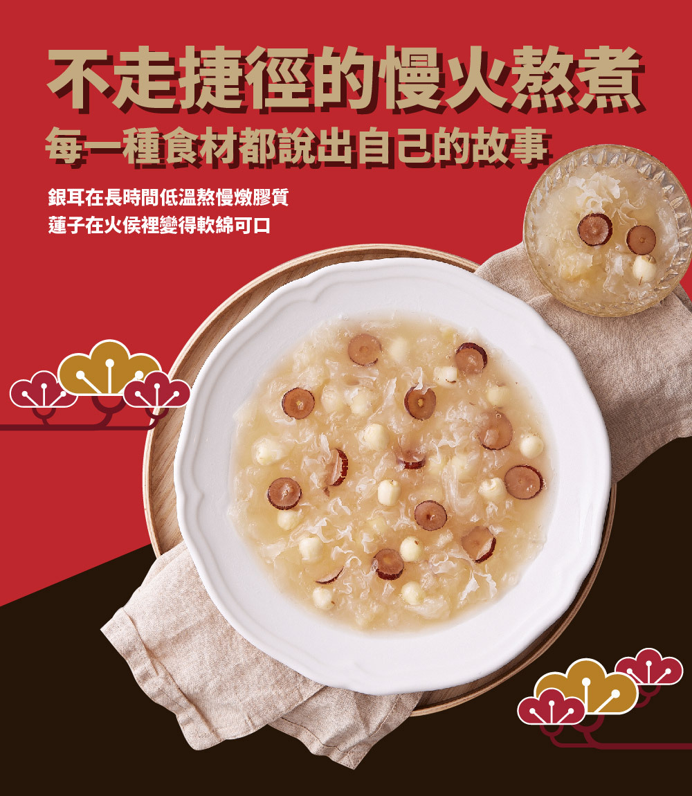 ◍ 精選銀耳與蓮子,口感滑嫩綿密