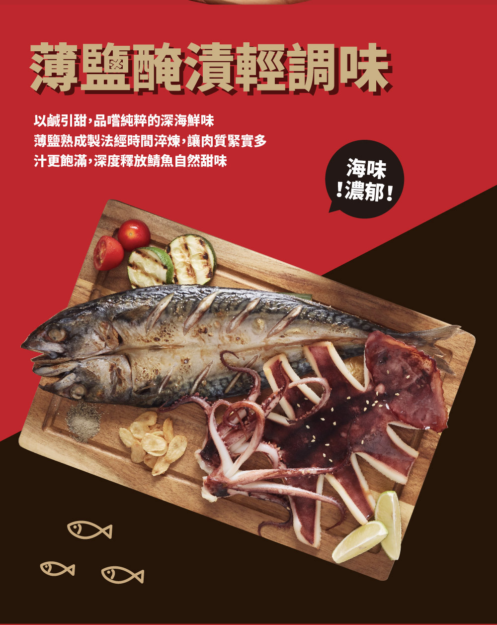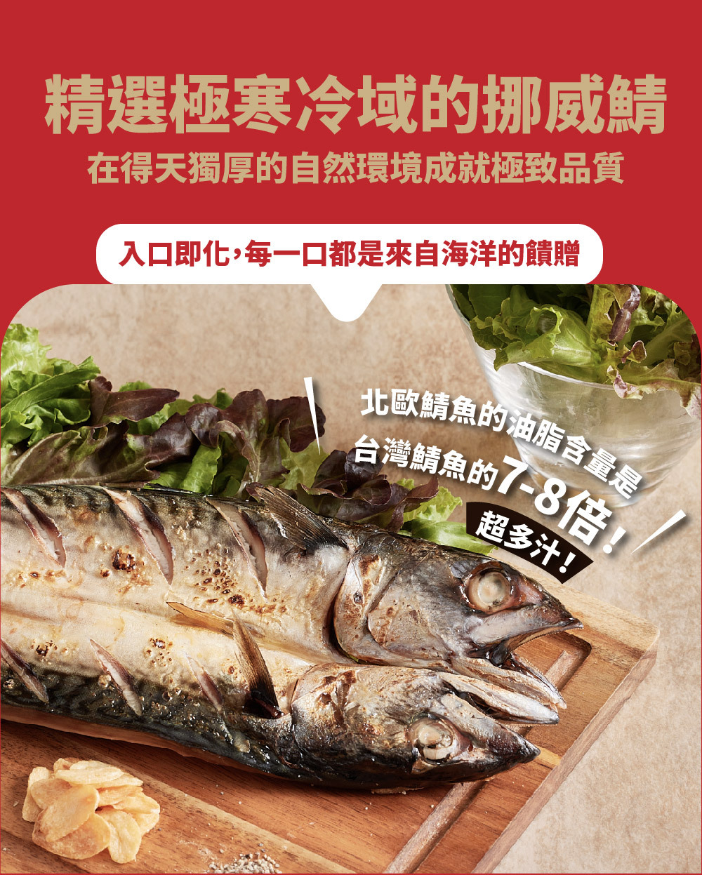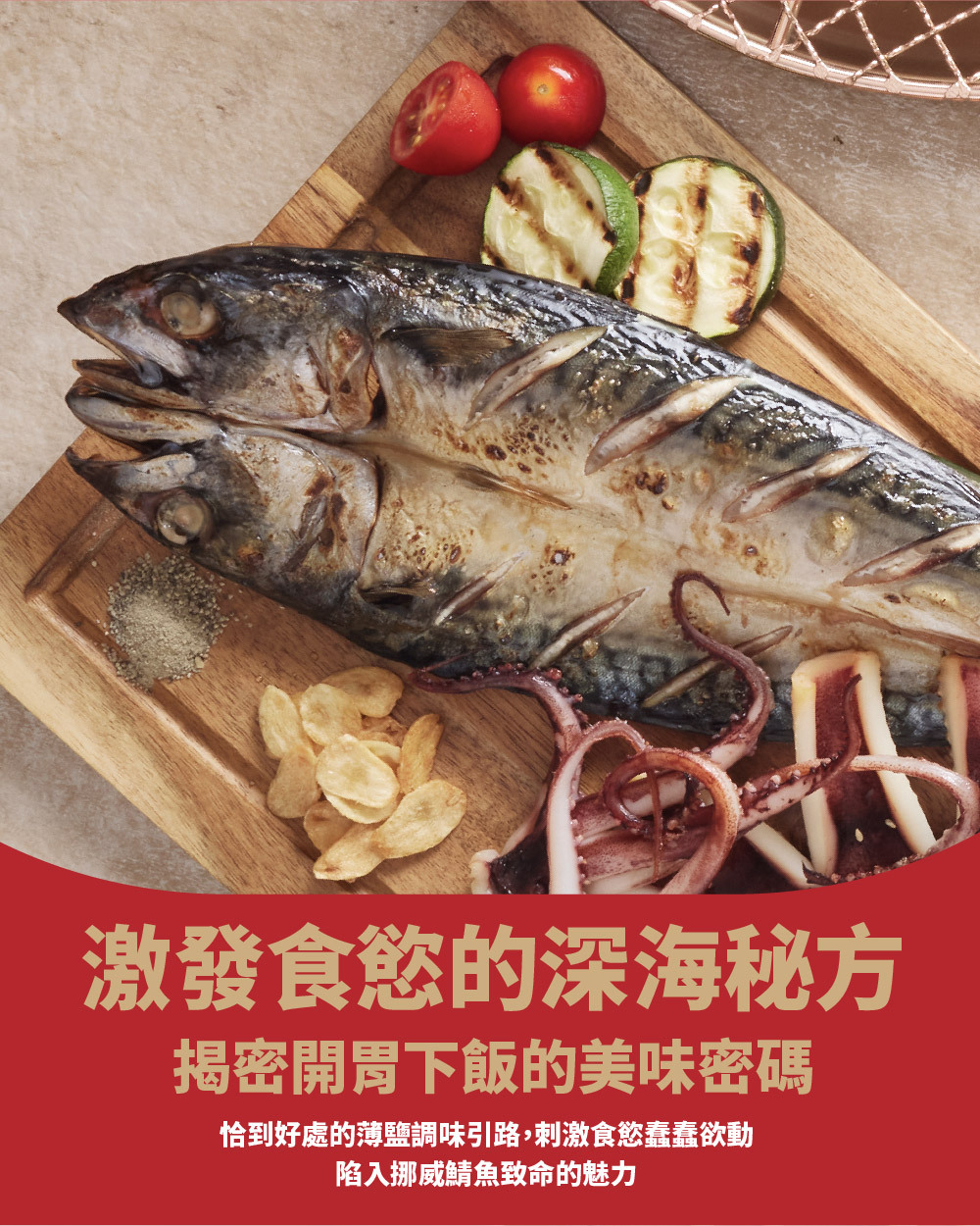 來自無汙染極寒海域的挪威深海新鮮鯖魚,油脂含量豐富口感佳,肉質細緻,以薄鹽醃漬定鹽自然風乾,熟成後更能吃出鯖魚的鮮嫩多汁!
