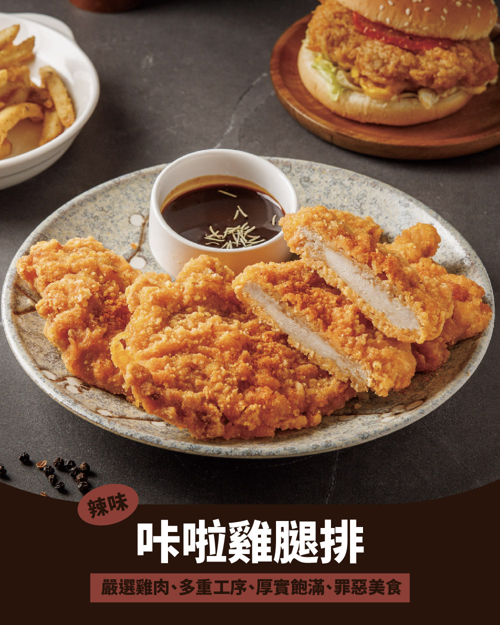 ◍ 厚實雞腿排,香脆多汁