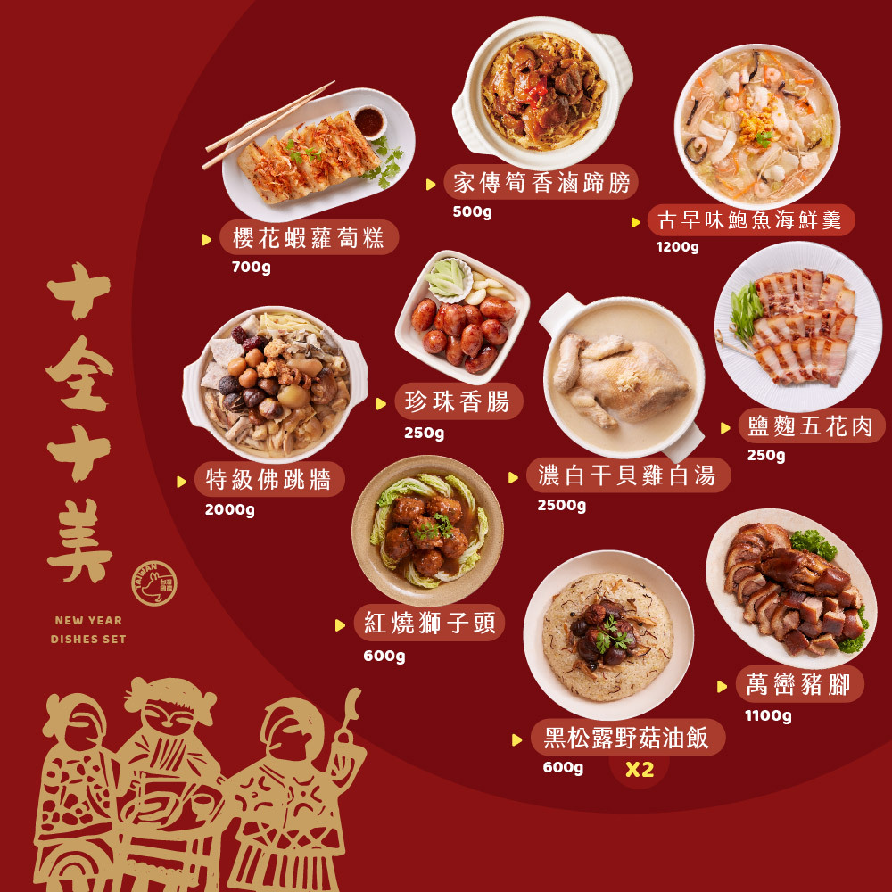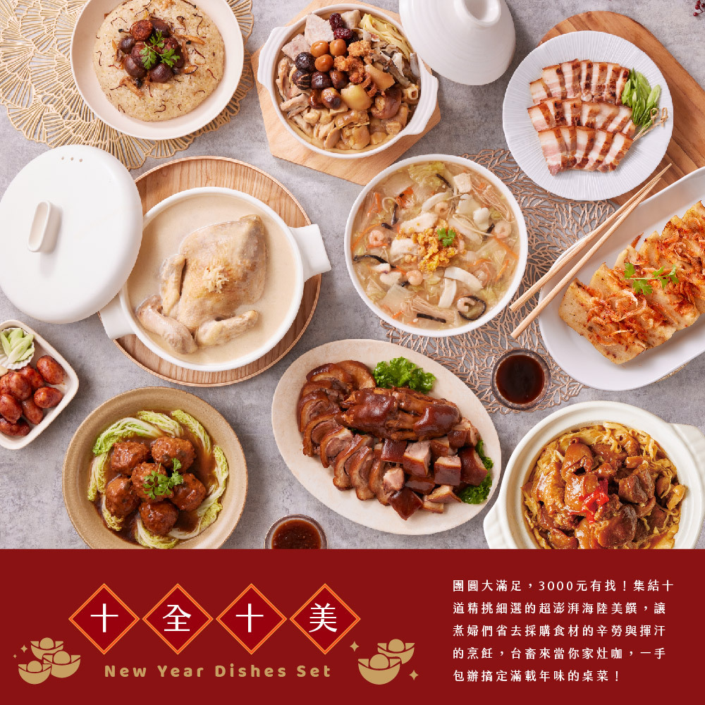 集結十道精挑細選的超澎湃海陸美饌,讓煮婦們省去採購食材的辛勞與揮汗的烹飪,台畜來當你家灶咖,一手包辦搞定滿載年味的桌菜!